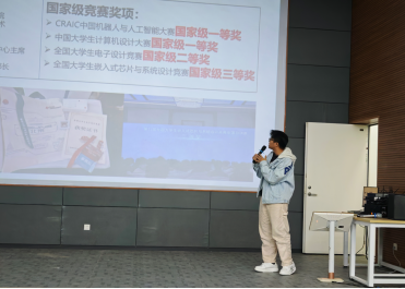 王微微老师在会上分享了其课题组的研究方向与阶段性科研成果,详细介绍了科研训练与竞赛备赛之间的内在联系,鼓励同学们在科研实践中提升工程能力与创新素养,并热情邀请有兴趣的同学加入课题组,以科研实践反哺竞赛训练,实现“以研促赛、赛研融合”的良性发展。