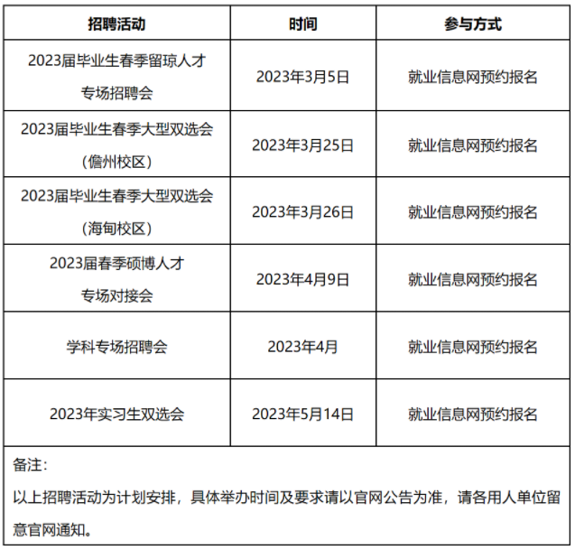 具体举办时间及要求请用人单位关注“澳门十大信誉好的网站就业信息网”和“澳门十大信誉好的网站就业服务”微信公众号通知公告。